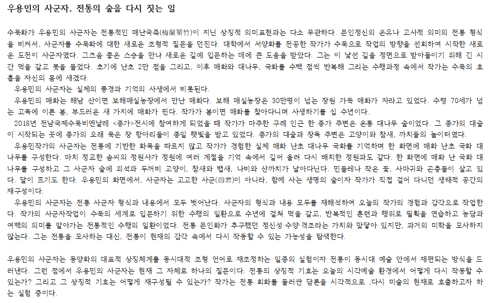 우용민수묵회화전_하늘이 내린천 인제가 가꾼 자작나무 숲
